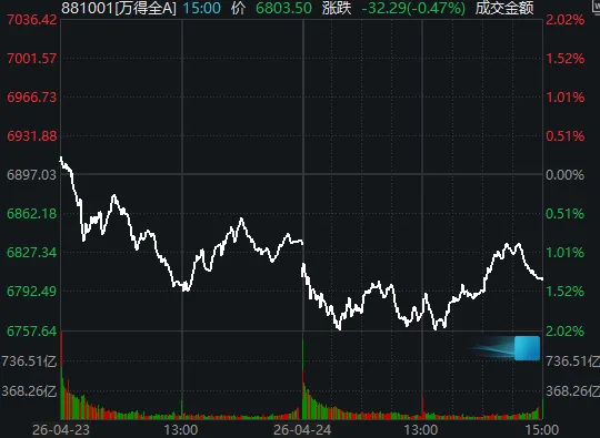 4月24日,市场探底回升,三大指数午后跌幅收窄,创业板指此前一度跌超2.5%。截至收盘,沪指跌0.33%,深成指跌0.69%,创业板指跌1.41%。